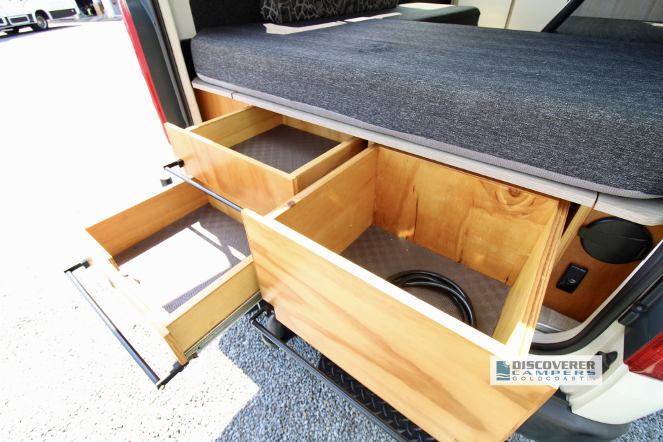 - Custom rear slide out drawers